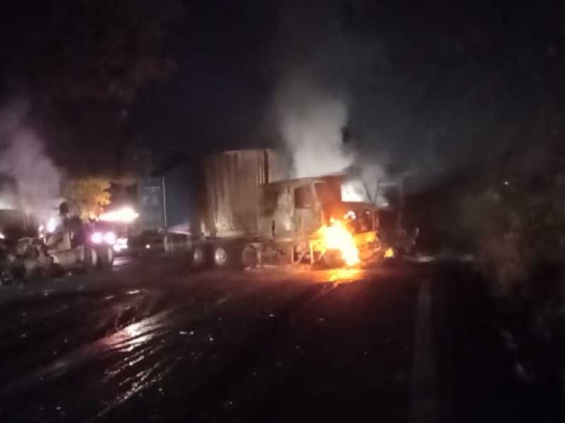 Los hechos ocurrieron alrededor de las 5:30 horas cuando sujetos armados despojaron de dos tráileres a los conductores y les prendieron fuego a unos metros del entronque de Zumpimito.